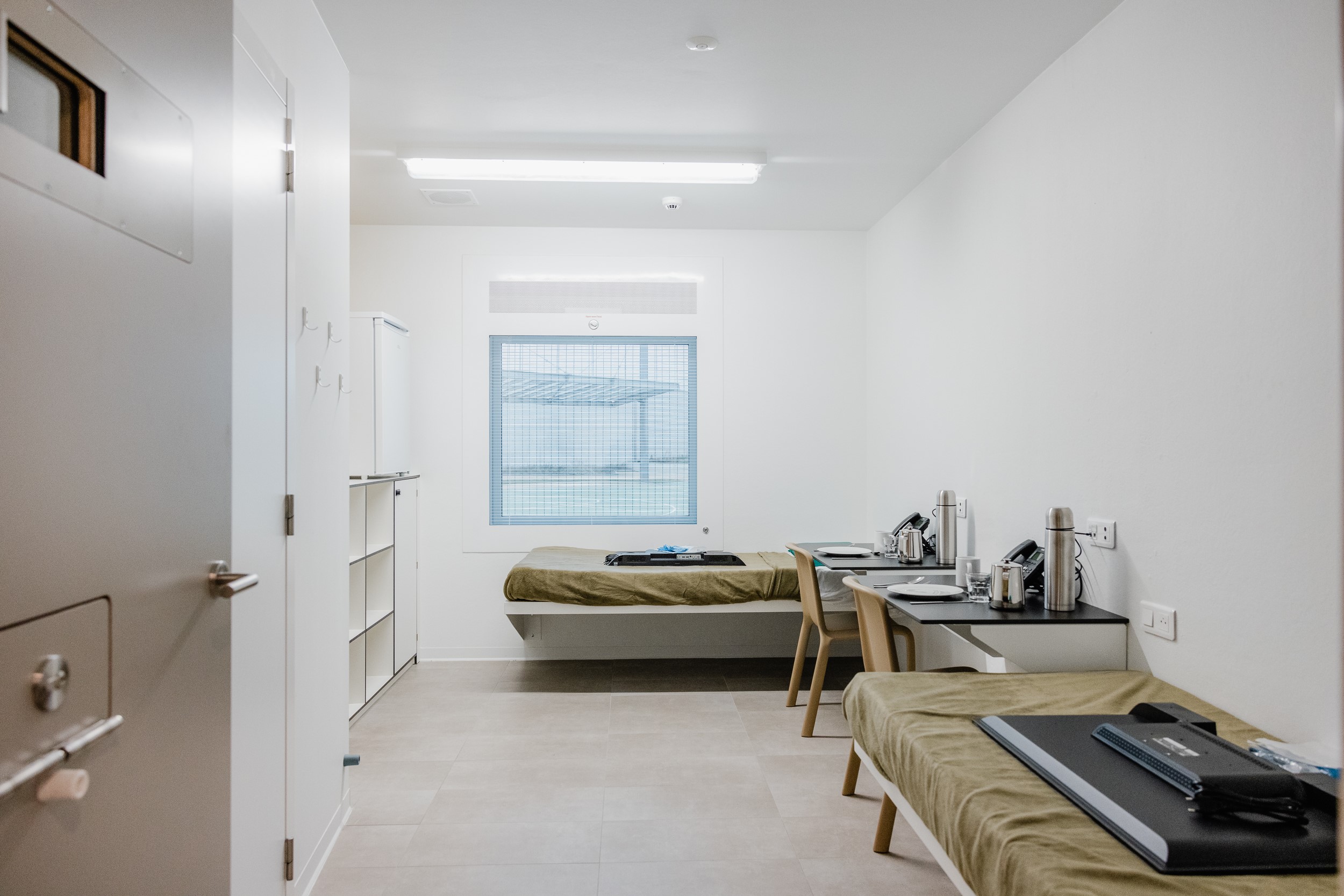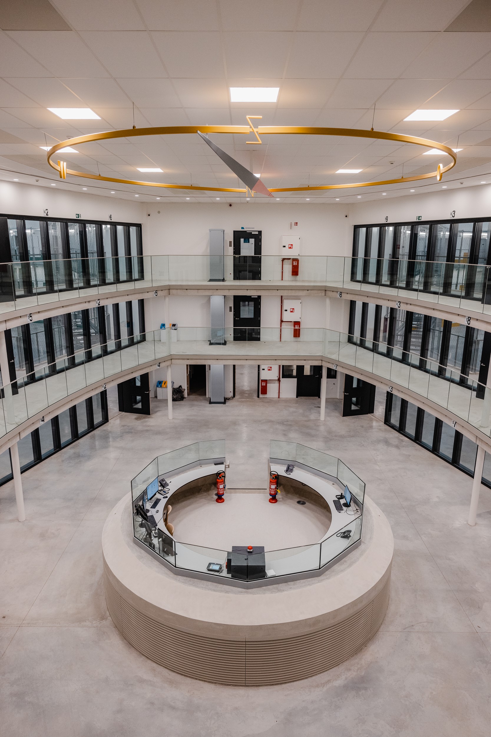The new complex accommodates 444 inmates and provides sustainable, modern and humane detention. It consists of four separate building sections, four cell wings, which are situated around one central supervisory core, and consists of open galleries for greater transparency and a greater sense of security. There is also a logistics building with workshops, a kitchen and laundry. The individual building parts are connected by corridors partly made of glass slats. Contract manager at Invesis Sharon Lubbersen was involved in the entire execution of the project. ‘We tried to enhance the livability and workability of the complex by using colours and materials such as wood.’